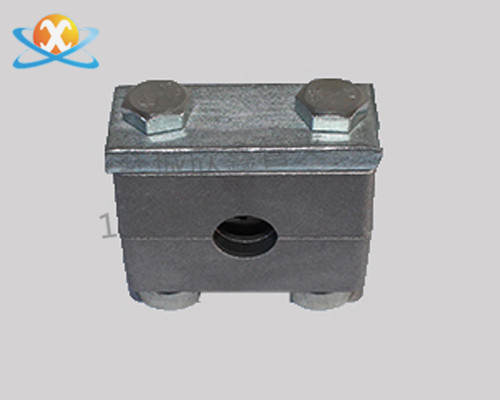 3、疊起裝配,導(dǎo)軌可焊在基礎(chǔ)上,或用螺釘固定,先裝上下半個管夾身,放上需固定的管子再放上上半個管夾身,用螺釘固定,通過防松蓋闆防止它轉動。然後安裝第二個管夾,方法同上。